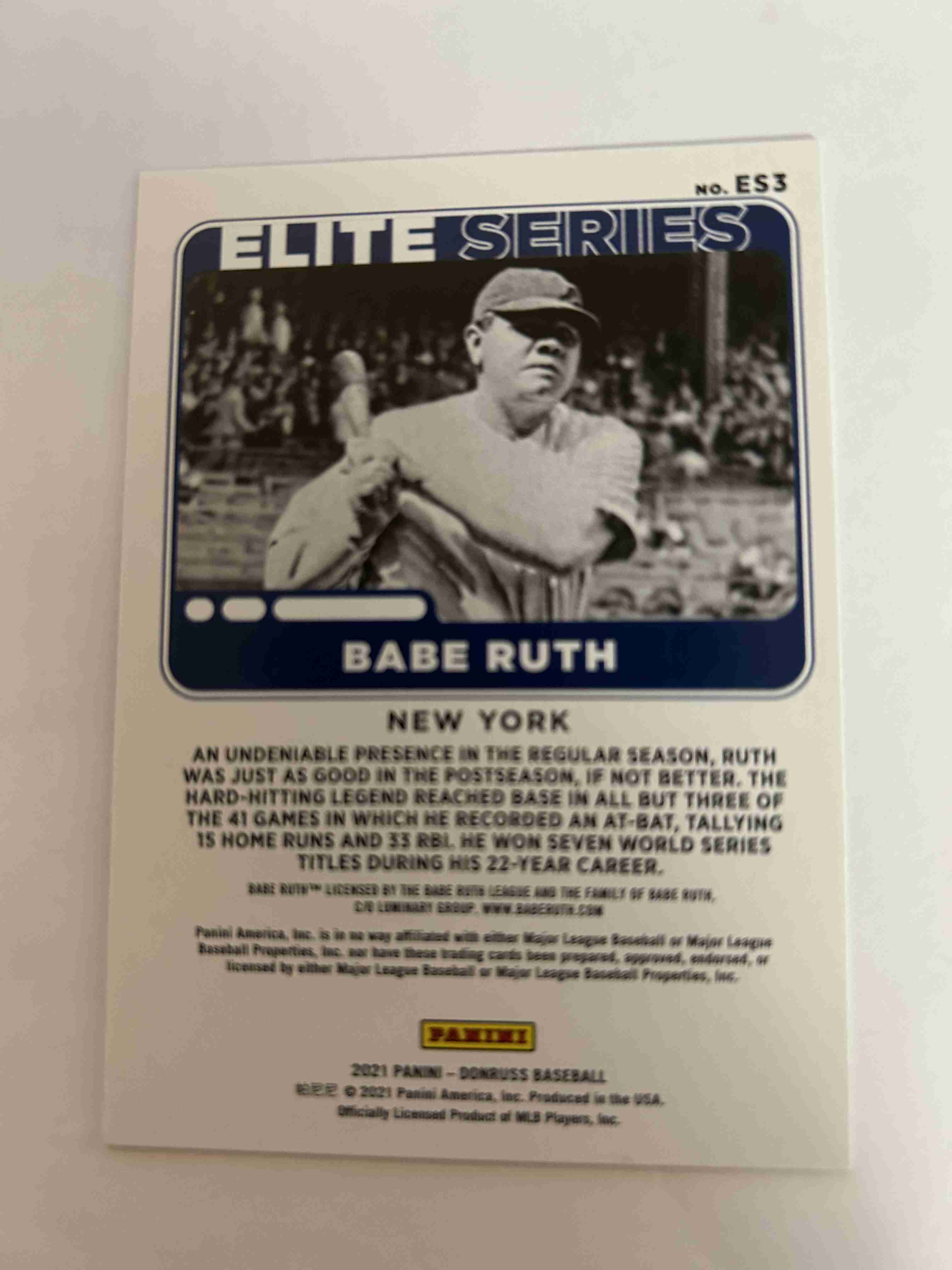 This auction is for a 2021 Donruss Baseball Elite series (Vector) Babe Ruth #ES3.