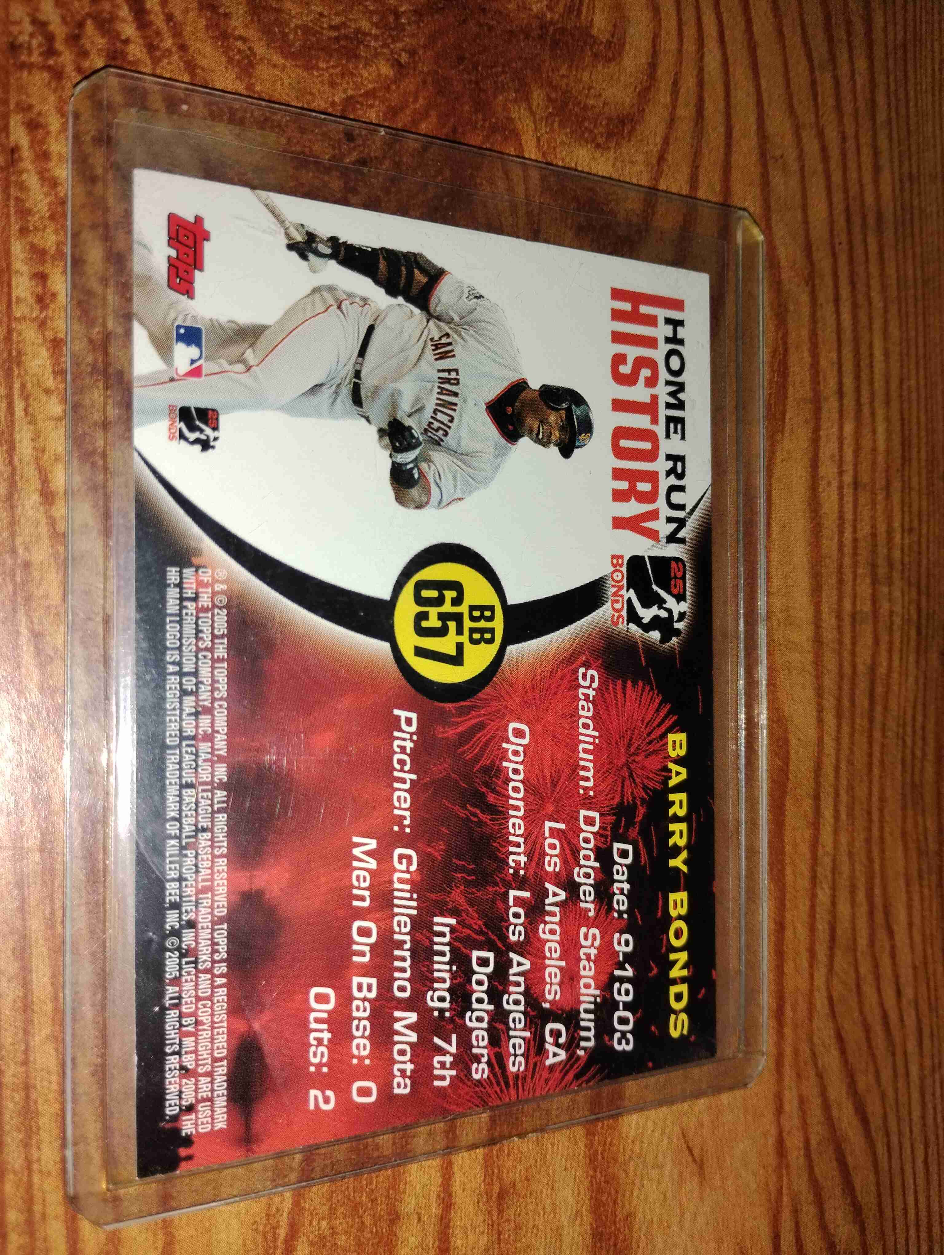BARRY BONDS 2005 TOPPS HOMERUN HISTORY CARD HR.#657