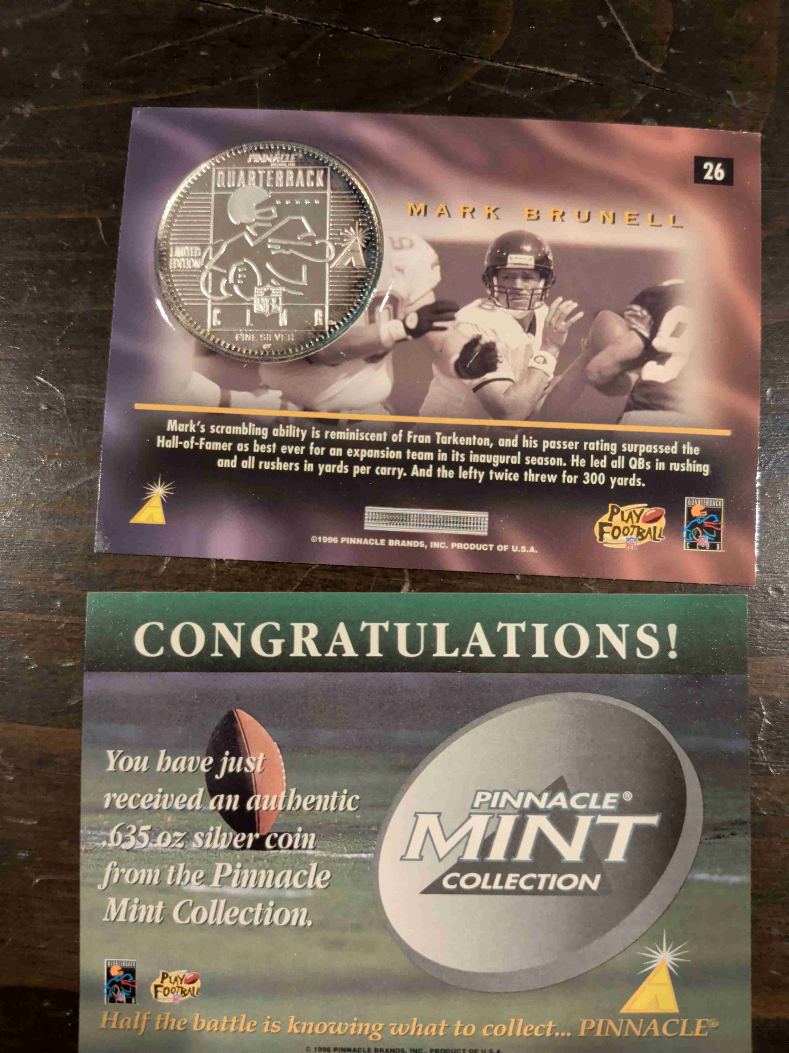 Pinnacle Mint Mark Brunell Real Silver Coin