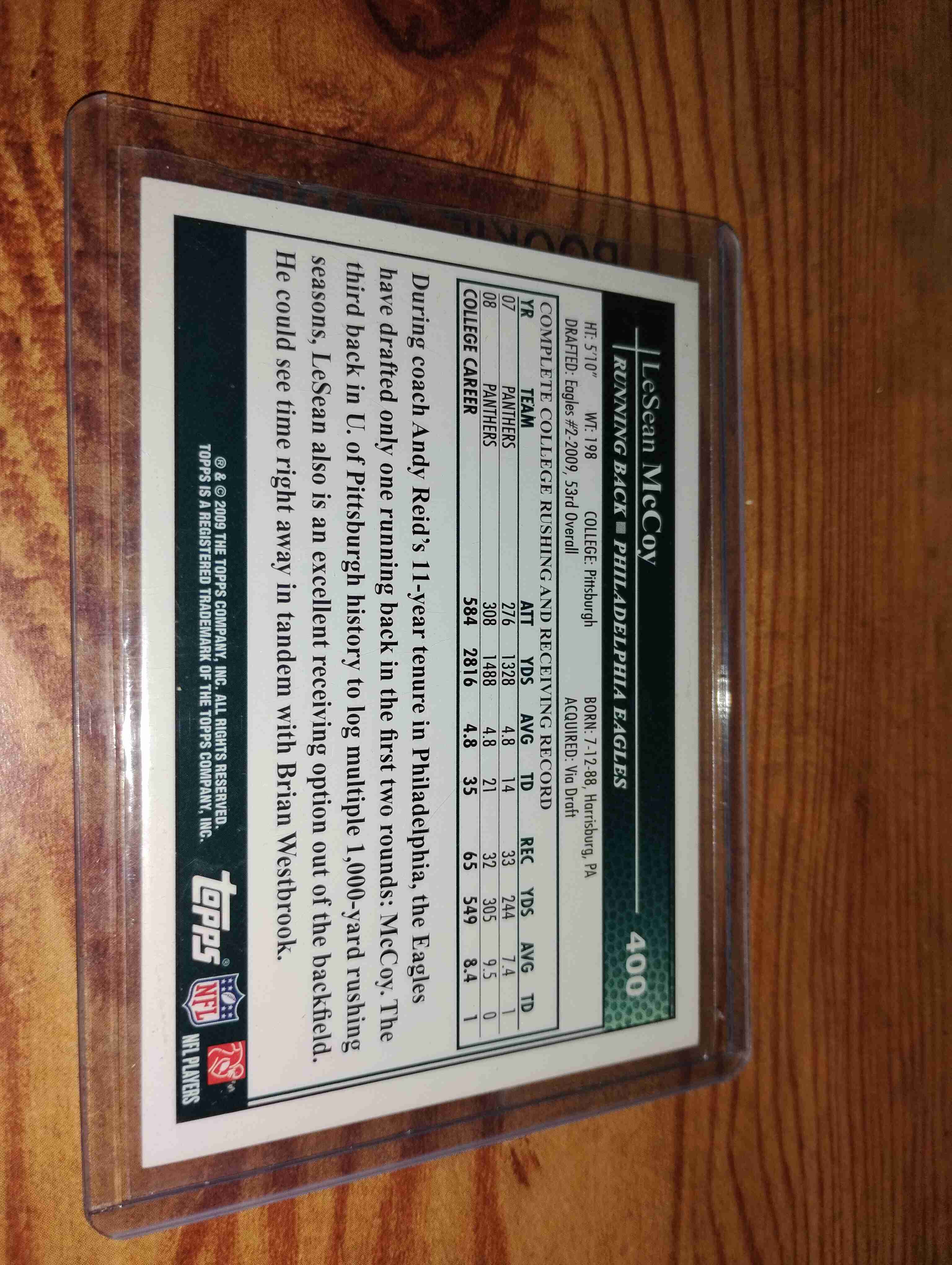LASEAN MCCOY 2009 TOPPS ROOKIE CARD #400