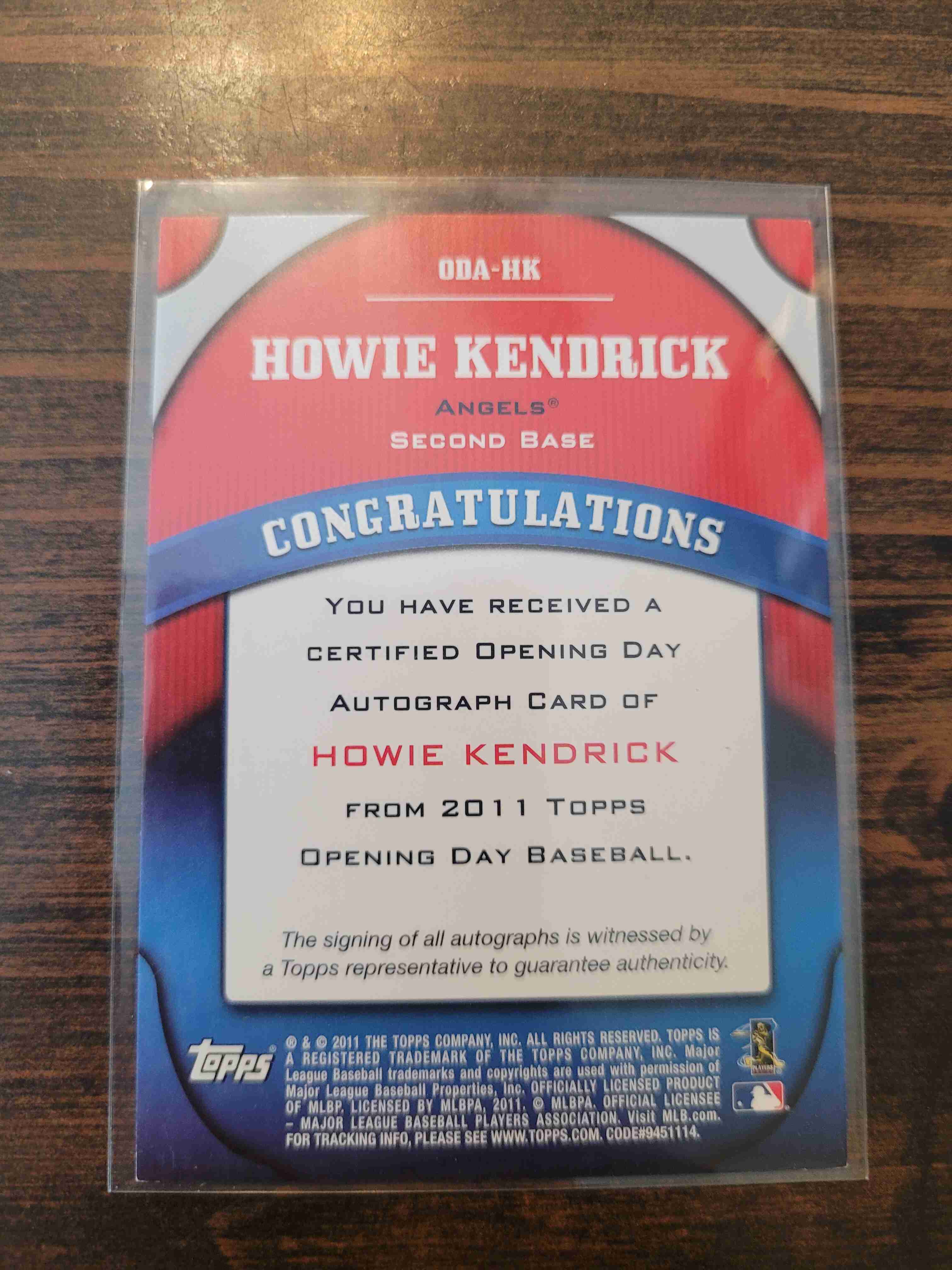 2011 TOPPS OPENING DAY AUTO HOWIE KENDRICK #ODA-HK