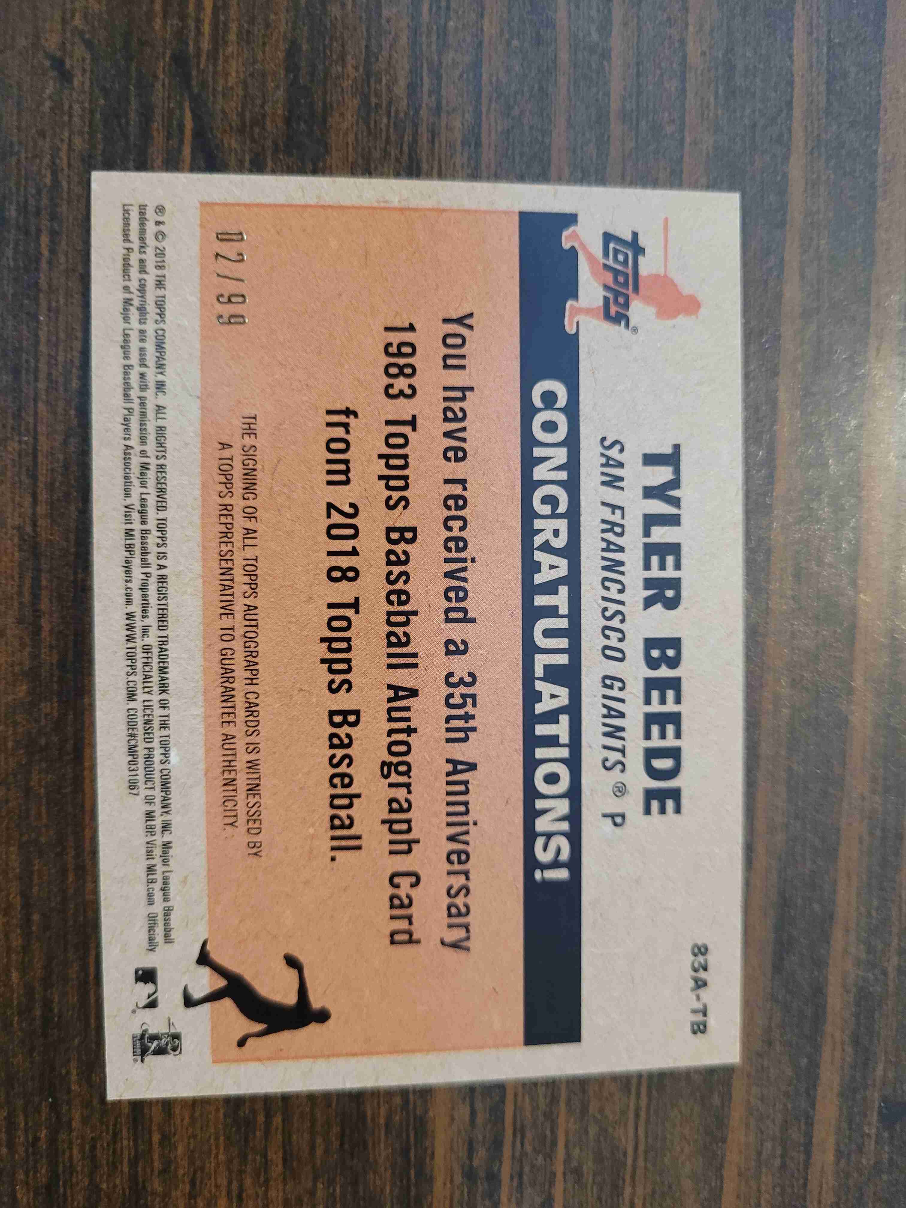 2018 TOPPS 1983 BLACK AUTO TYLER BEEDE #83A-TB #'D2/99