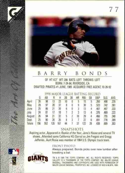 1999 Topps Gallery #77 Barry Bonds - NM-MT