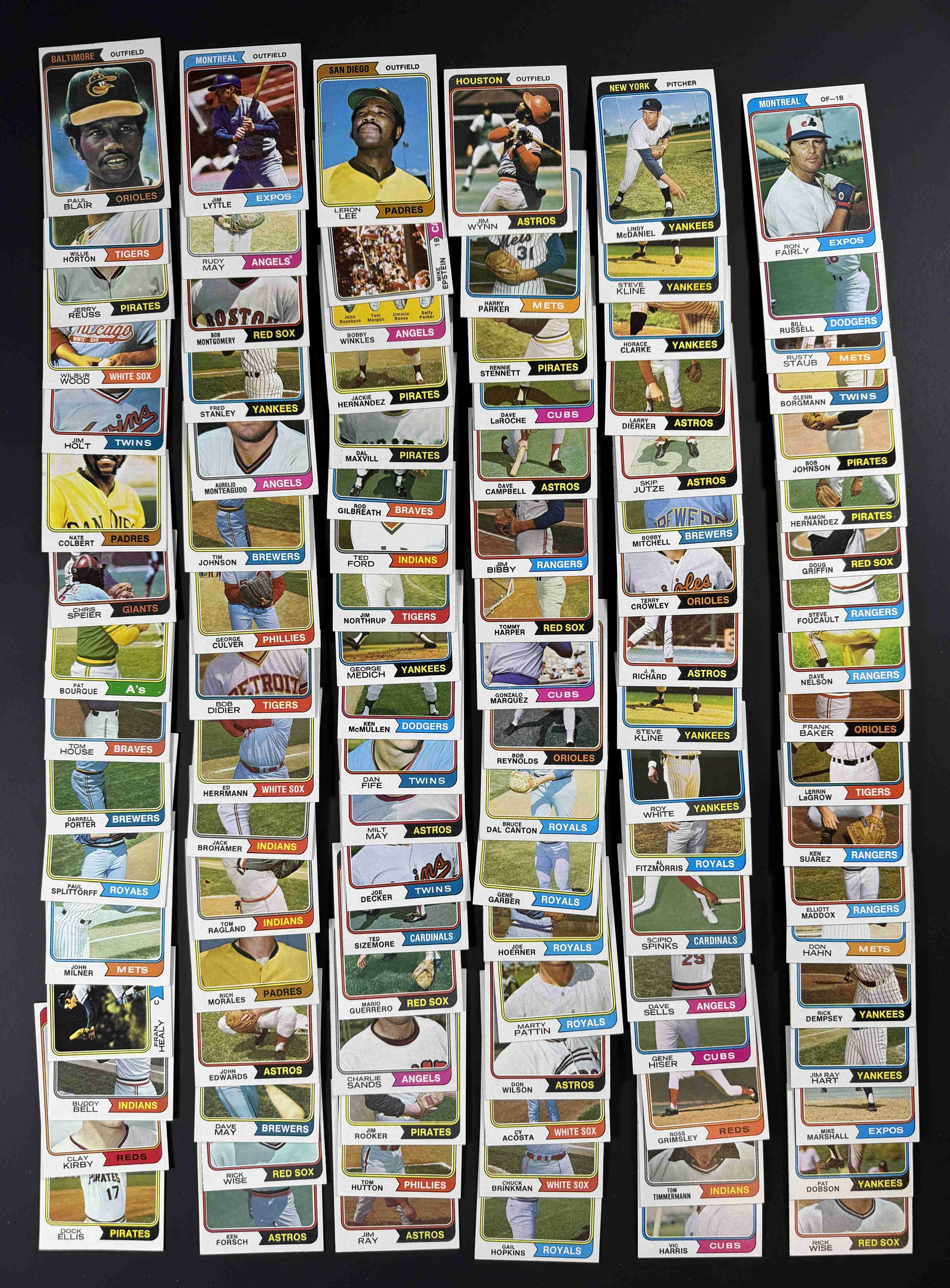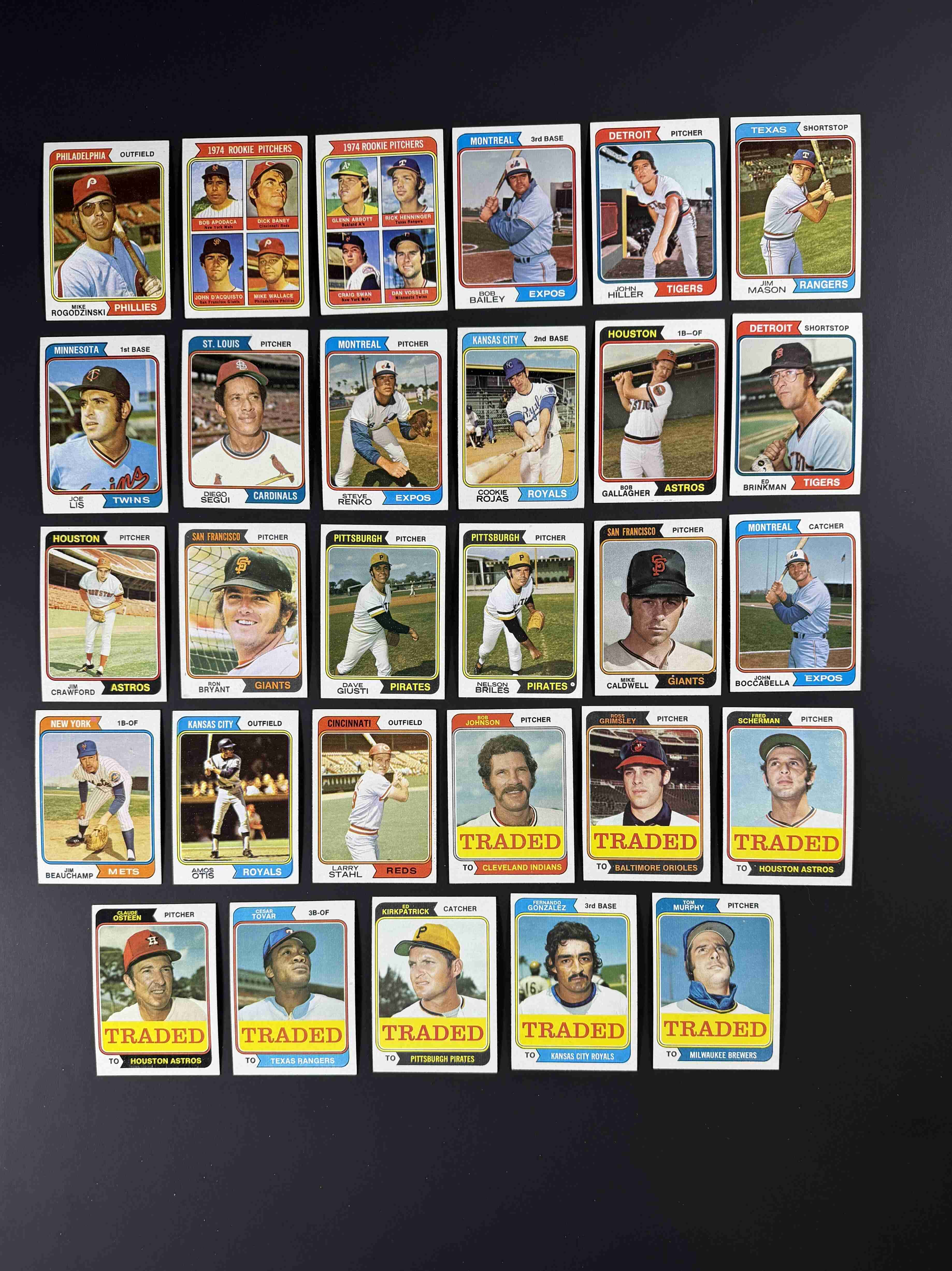 All different. 150 cards from the 1974 base set plus 8 cards from the Traded set. Cards are in EX-MT condition. Some are NM or better. Maybe 10-15%.