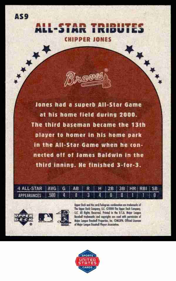 2001 Upper Deck Vintage #AS9 Chipper Jones All-Star Tributes