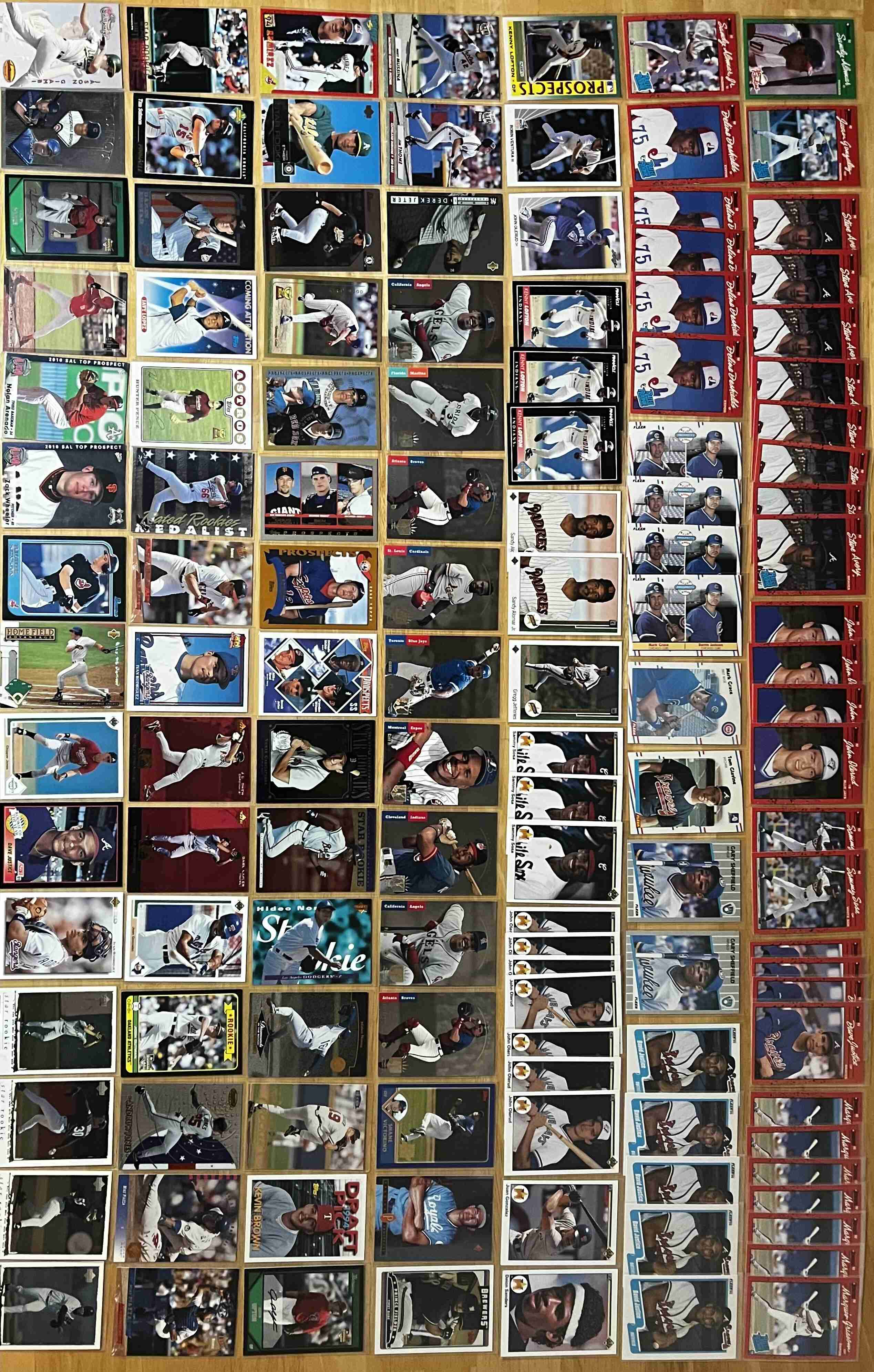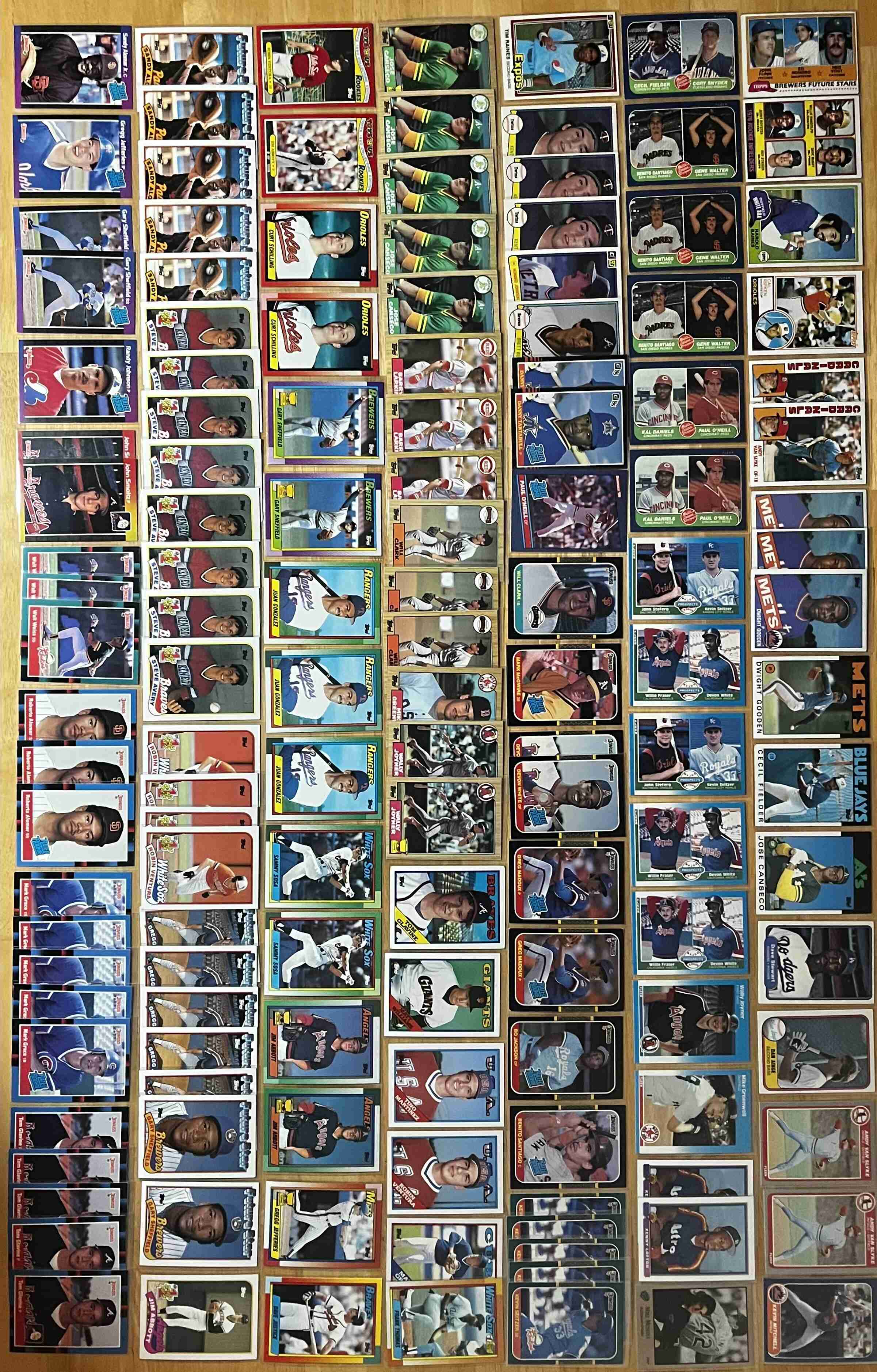 THIS IS A PERSONAL COLLECTION OF ONLY ROOKIE CARDS SPANNING FROM 1981 TO 2025 WHICH INCLUDES EVERY MAJOR BRAND. TOPPS, BOWMAN, DONRUSS, FLEER, UPPER DECK, LEAF, O-PEE-CHEE, SCORE, SP, PINNACLE, STUDIO, DONRUSS PREFERRED, FLEER EX, SKYBOX, METAL UNIVERSE, TOPPS CHROME, BOWMAN CHROME, FINEST, ALLEN & GINTER, STADIUM CLUB, BOTH REGULAR AND CHROME. EVERY SINGLE CARD IS SLEEVED EXCEPT FOR MAYBE 200-250 AND THOSE ARE THE LESSER KNOWN NAMES SUCH AS KERRY WOOD, YASIEL PUIG, GREG JEFFRIES AND ROBIN VENTURA. SOME OF THE BIGGER NAMES ARE GREG MADDUX, BO JACKSON, TARIK SKUBAL, DWIGHT GOODEN, DARYL STRAWBERRY, JOSE CANSECO & BARRY BONDS. THERE ARE SHORT PRINTS, VARIATIONS, SERIAL #'D, PARALELLS, COLOR, RATED ROOKIES AND SOME INSERTS. WAY TOO MANY CARDS TO SHOW IN 4 PHOTOS, NEED THE MONEY ALOT MORE THAN I NEED THE CARDS RIGHT NOW AND IF YOU HAVE GOT MY AUCTIONS BEFORE YOU KNOW THERE IS A TON IN THERE! SHIPPING WILL BE USPS PRIORITY W/ INSURANCE BECAUSE OF VALUE.