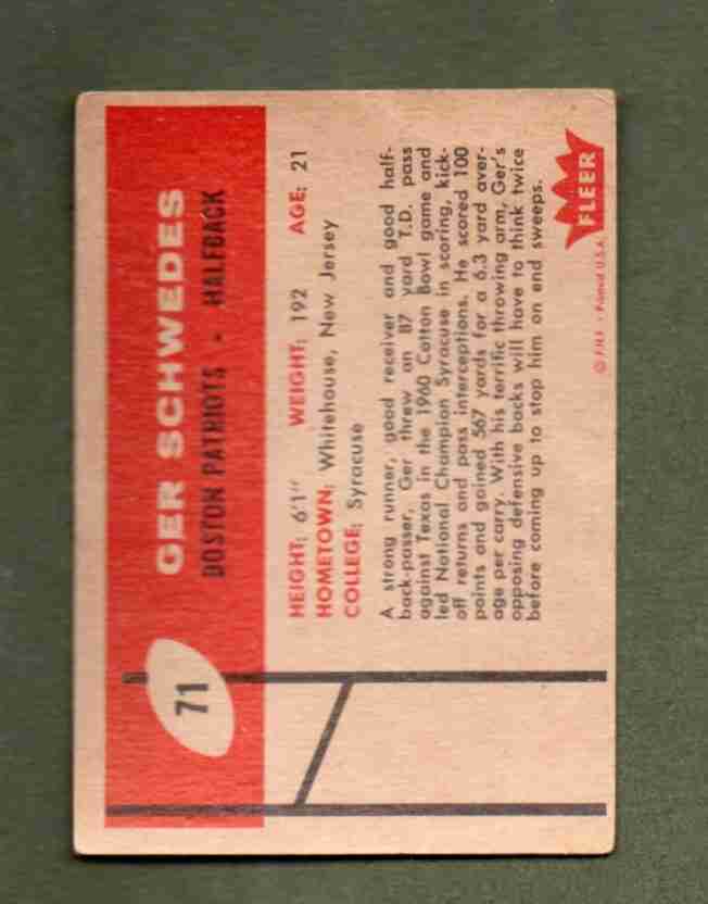 1960 Fleer # 71 GER SCHWEDES Boston Patriots