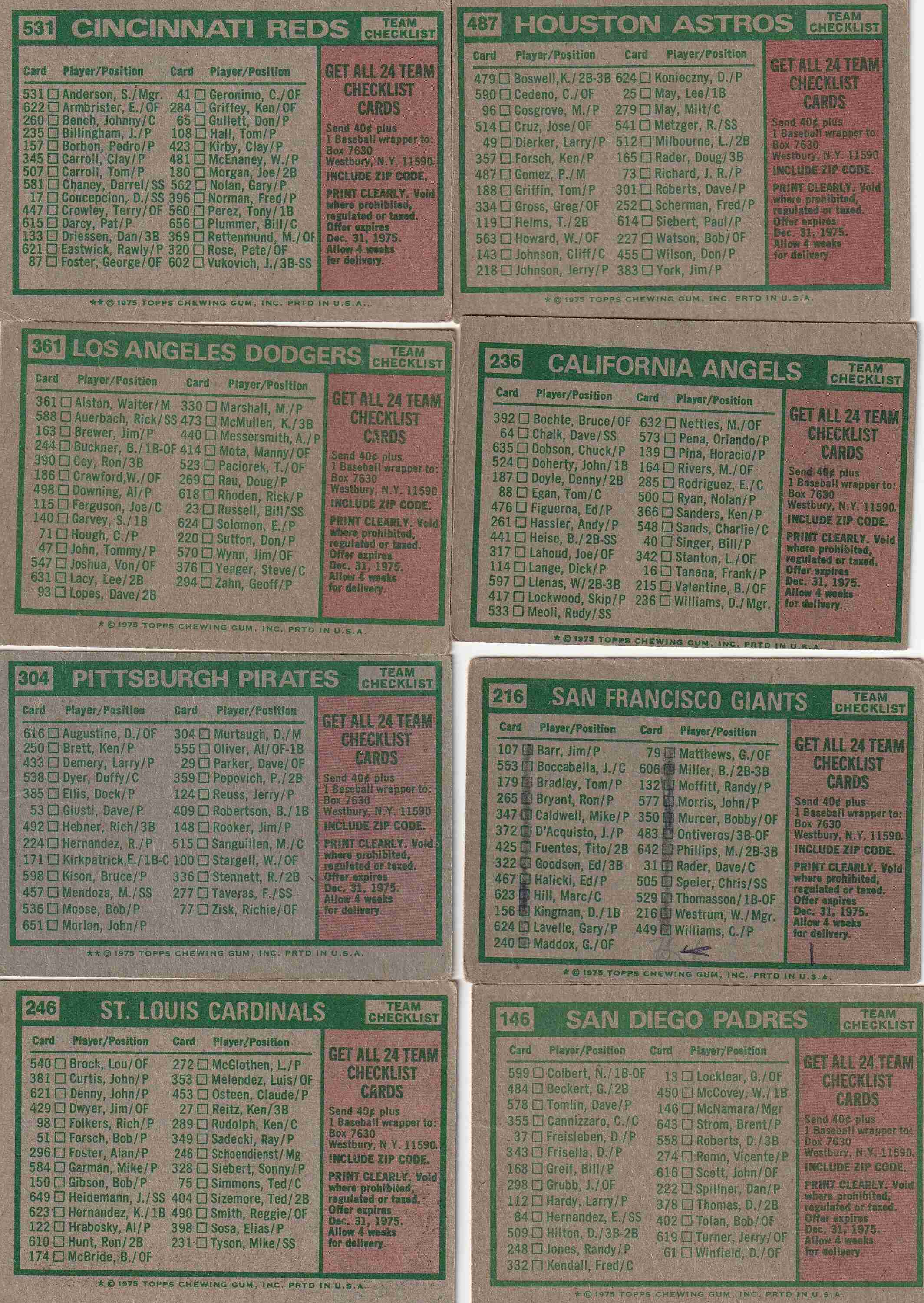 8-'75 Topps TC & 3- '74 Topps Team Checklists