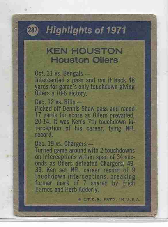 1972 Topps All-Pro #287 ~ Ken Houston Houston Oilers HOF