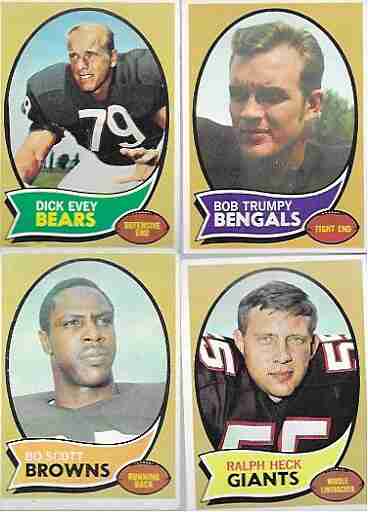 Topps 1970 Football Lot--30 different cards. Average condition is good to very good. The cards shown are representative of the entire lot.