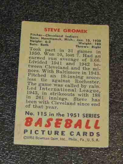 1951 Bowman #115 Steve Gromek - G/VG - BV $25