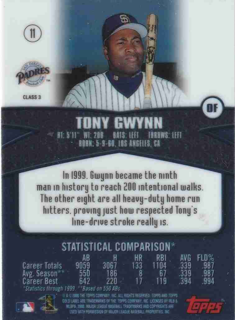 2000 Topps Gold Label #11 Class 3 Tony Gwynn