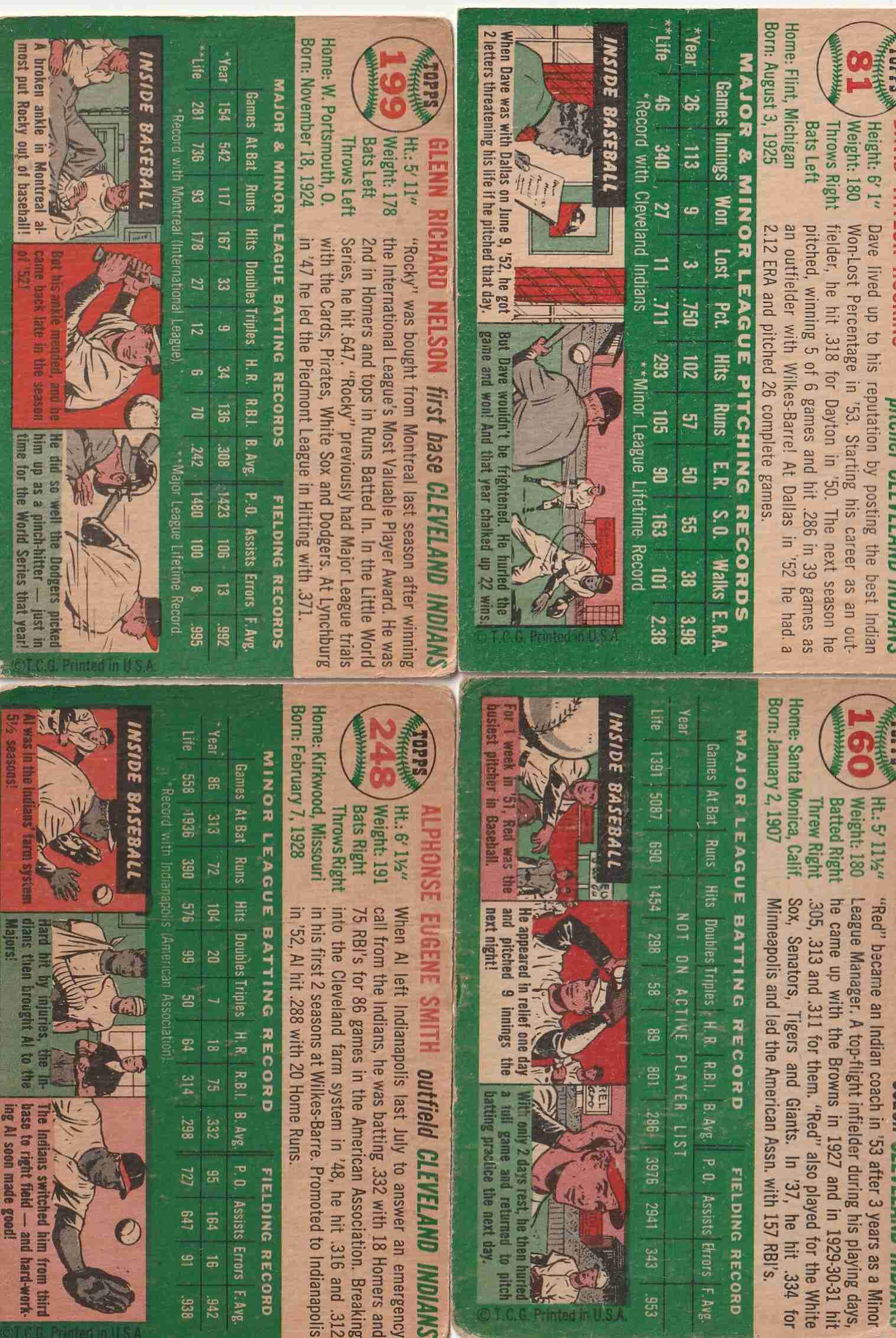 4-1954 Topps Clev Indians #'s 81 160 199 248 (lower grade)