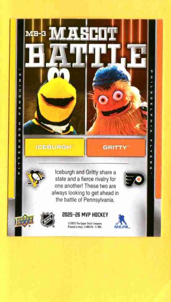 Iceburgh / Gritty #MB-3 2025 Upper Deck MVP Mascot Battle