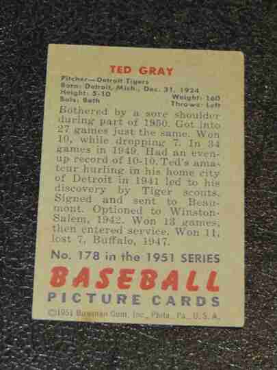 1951 Bowman #178 Ted Gray - VG+/EX - BV $25