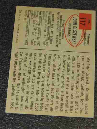 1954 Bowman #117 Johnny Olszewski- VG/VG+ - BV $15