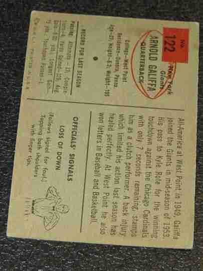 1954 Bowman #122 Arnold Galiffa - VG/VG+ - BV $8