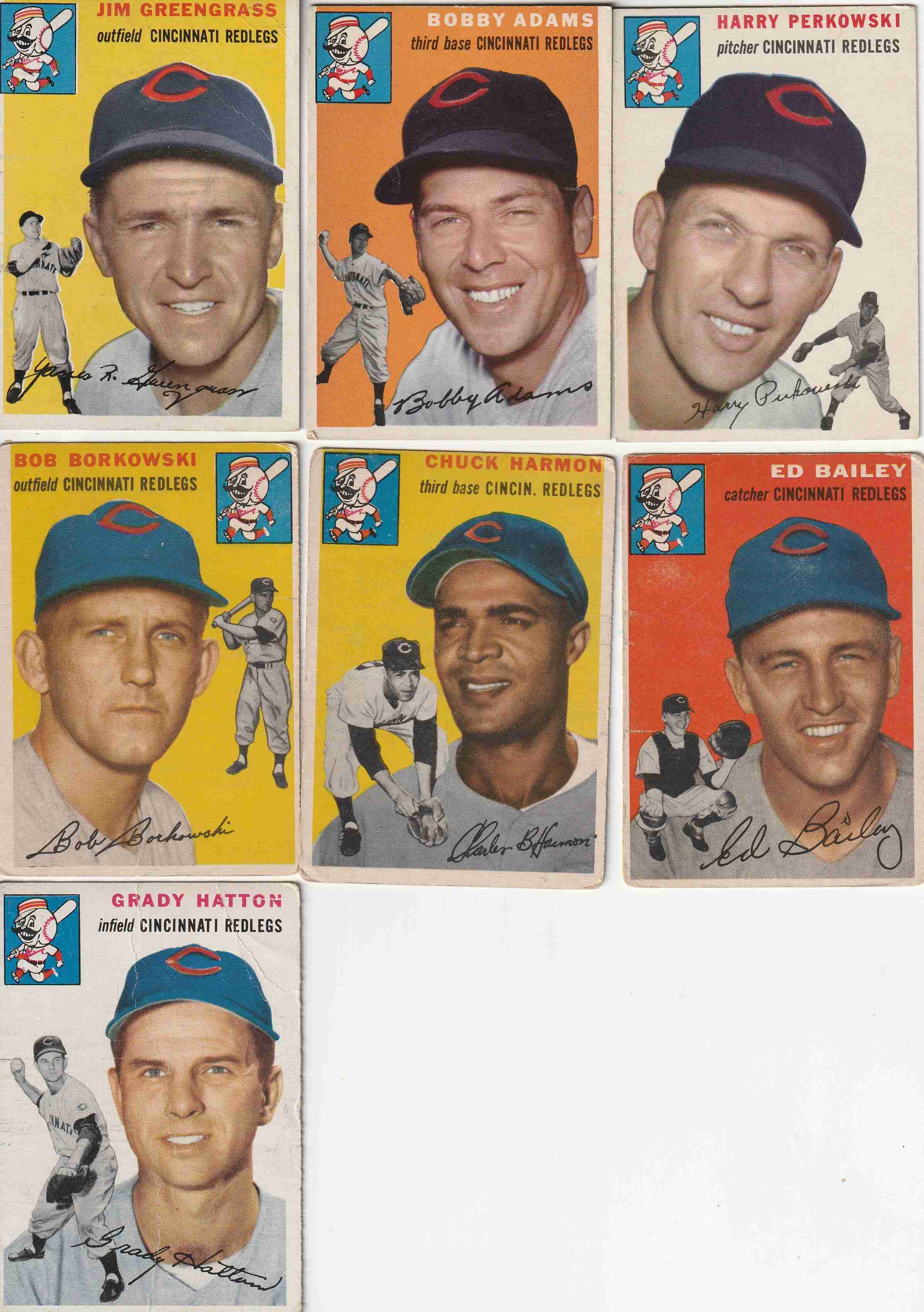 #22 Jim Greengrass (VG+) #123 Bobby Adams (EX+) #125 Harry Perkowski (EX/EX+) #138 Bobn Borkowski (VG+/EX) #182 Check Harmon (Good-VG) #184 Ed Bailey (Good-VG) #208 Grady Hatton (Fair-Good)