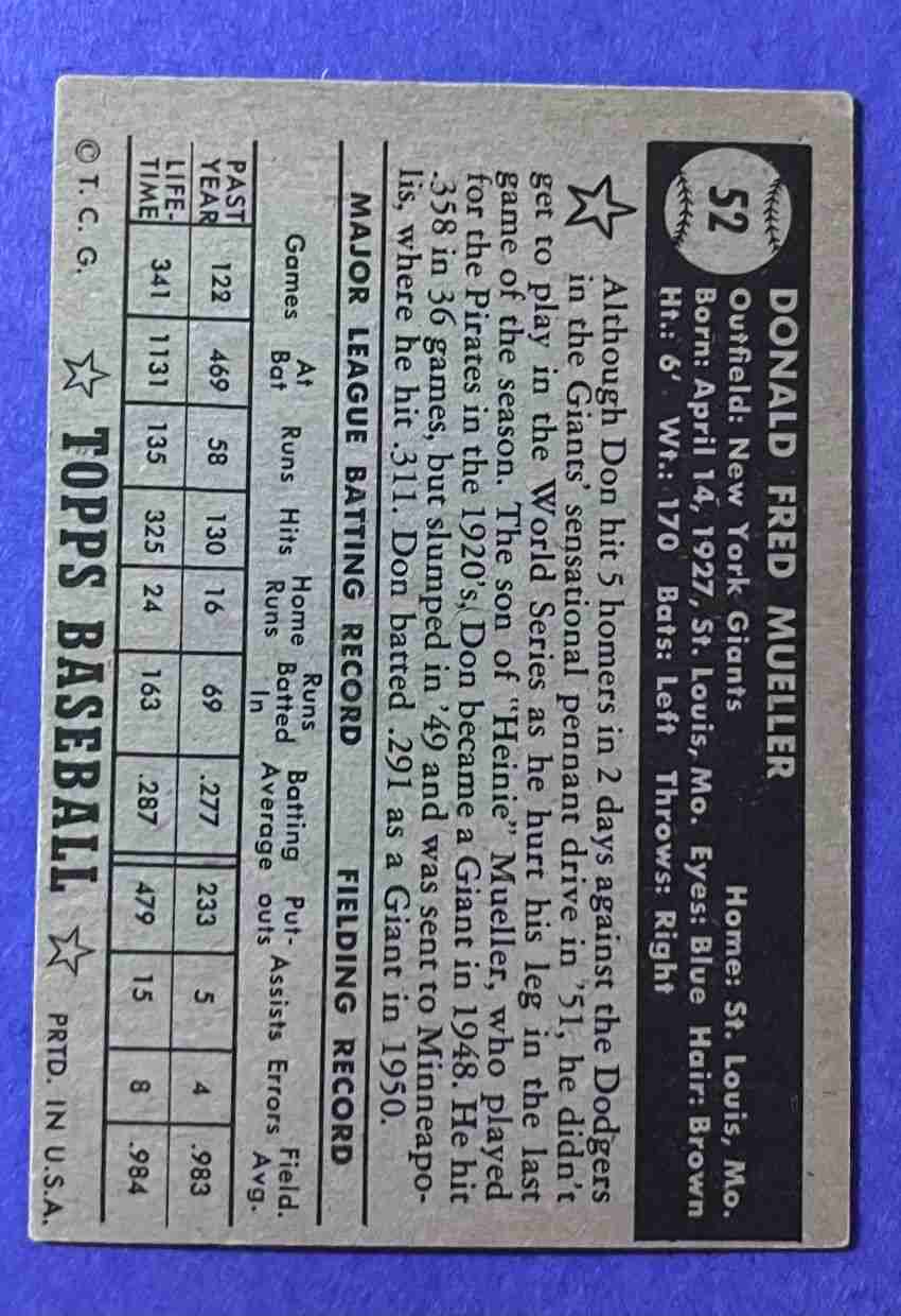 52 Topps DON MUELLER Lo #52 +++