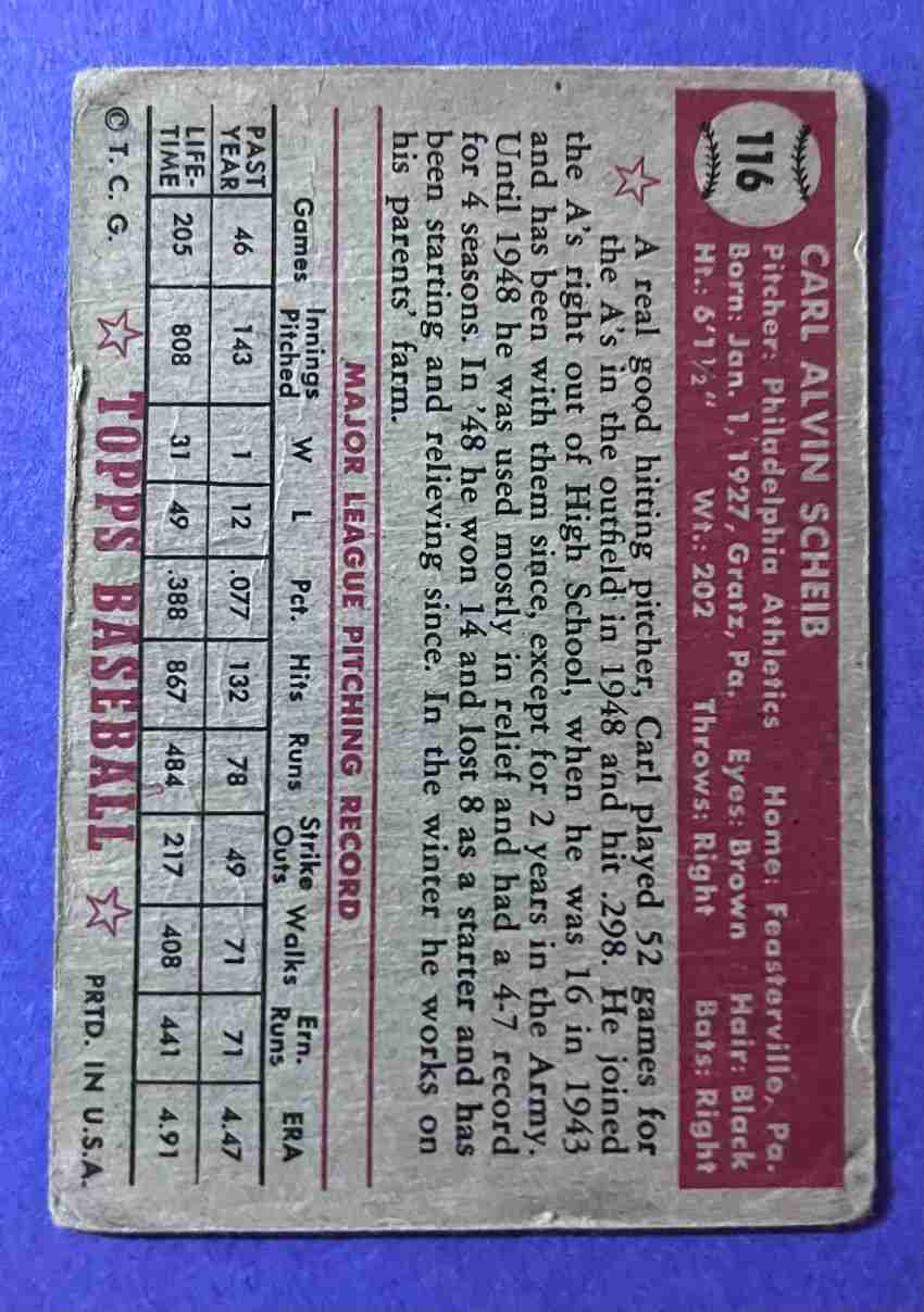 52 Topps CARL SCHEIB #116 +++