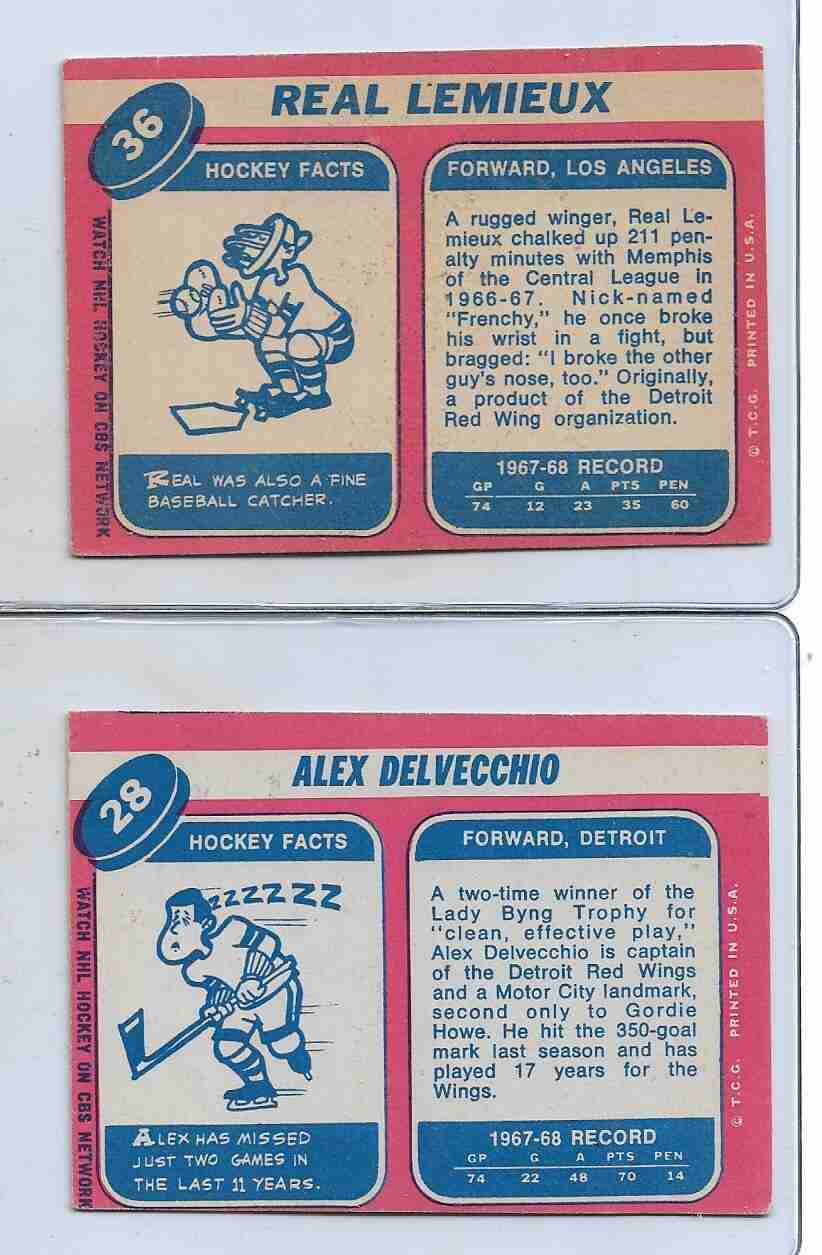 1968-69 OPC ~ 2 Card Lot w/Real Lemieux ` Alex Delvecchio
