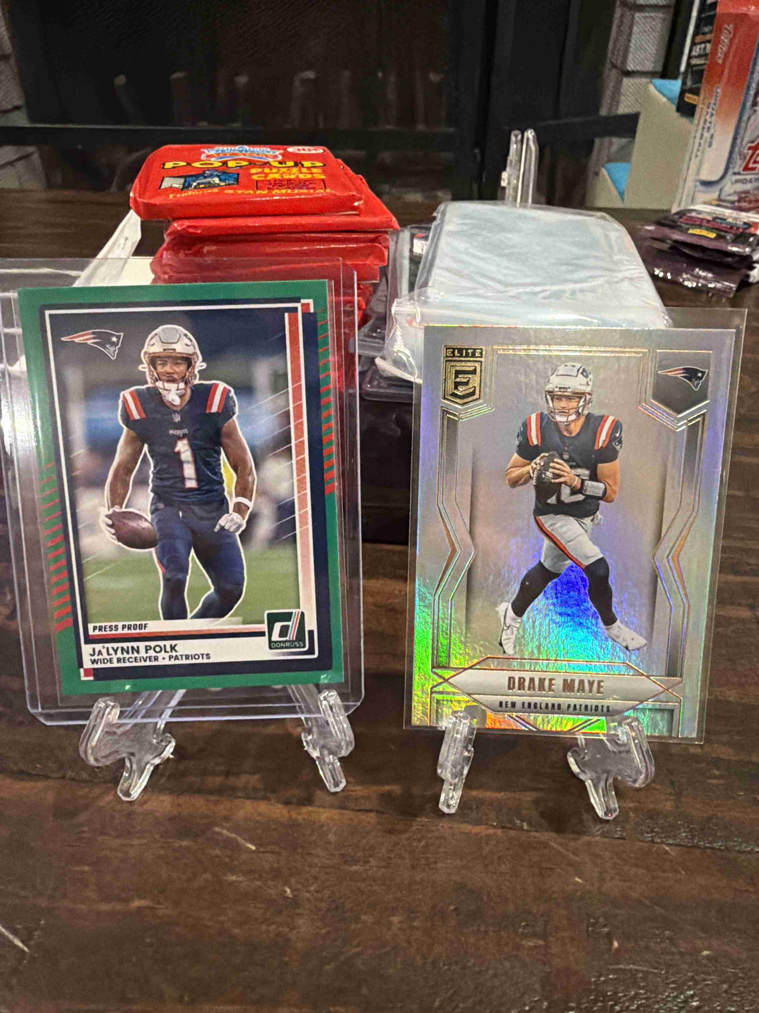 Patriots 2 card lot MAYE 25 Elite POLK 25 Donruss green
