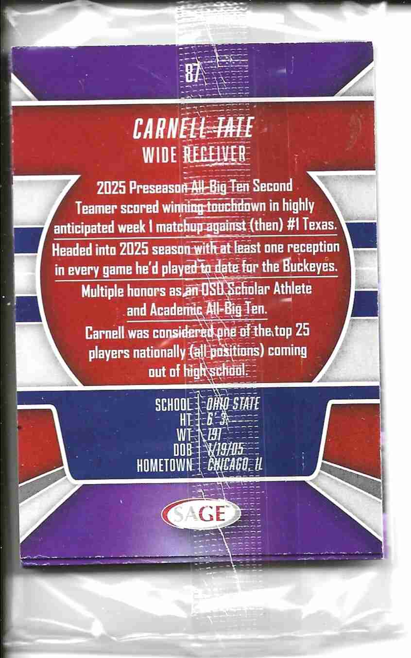 Will Kacmarek shown on top. #87 Carnell Tate shown on bottom.
