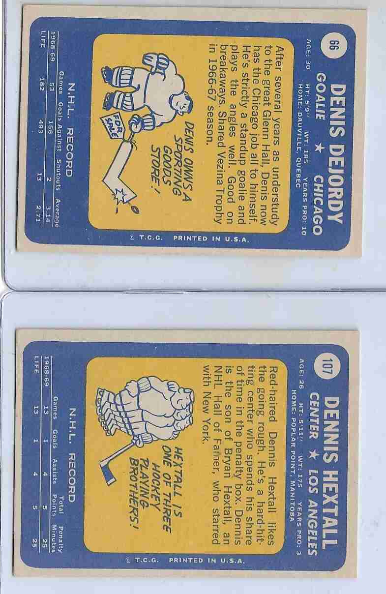 1969-70 Topps ~ 2 Card NHL Lot Denis Dejordy, Dennis Hextal