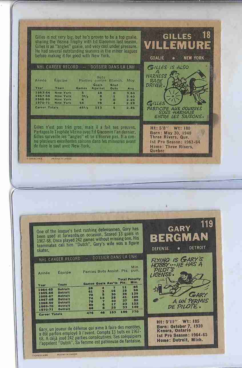 1971-72 Topps ~ 2 Card NHL Lot G. Villemure, Gary Bergman