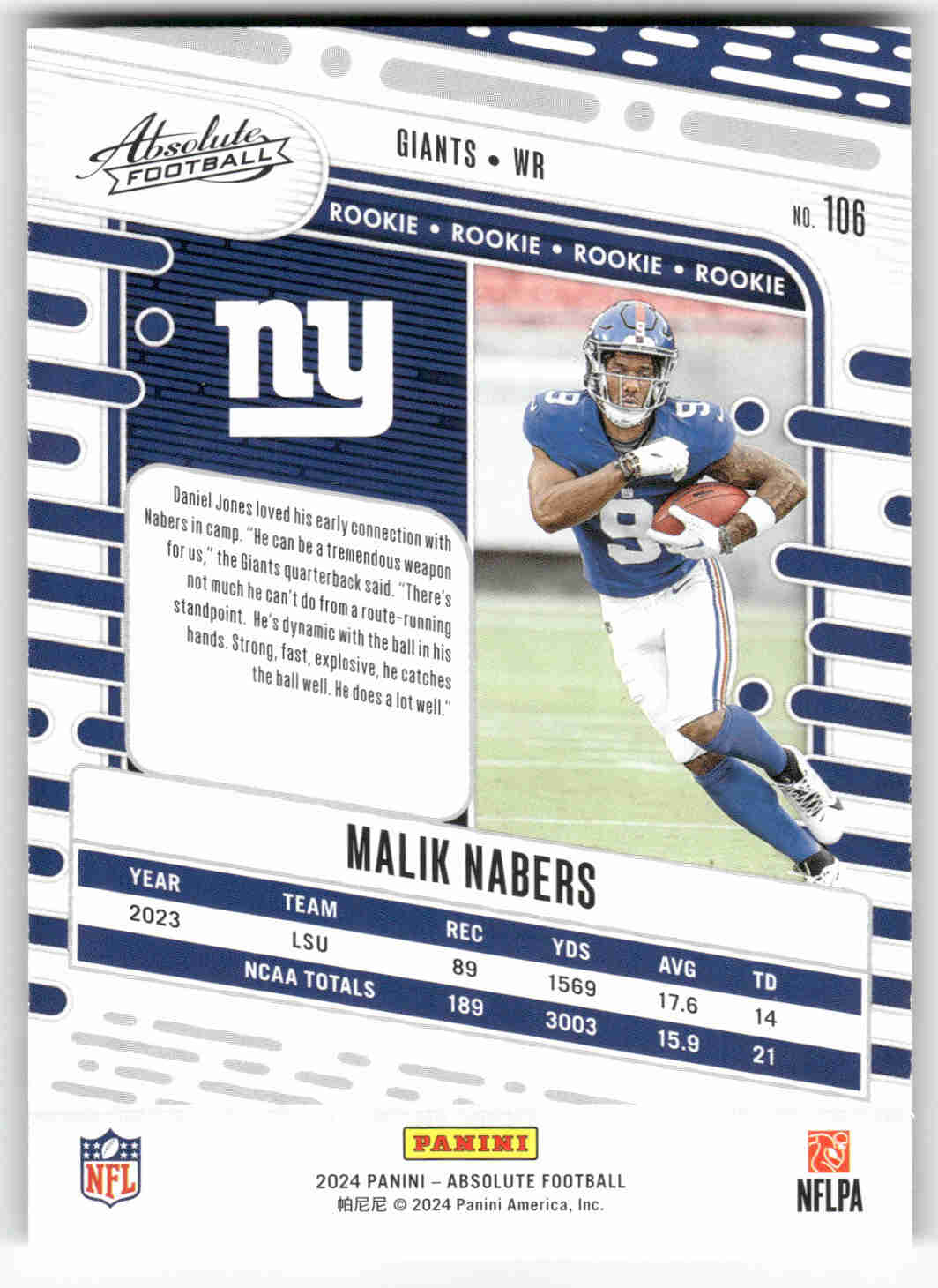 Malik Nabers 2024 Absolute #106 RC Rookie $.60 PWE