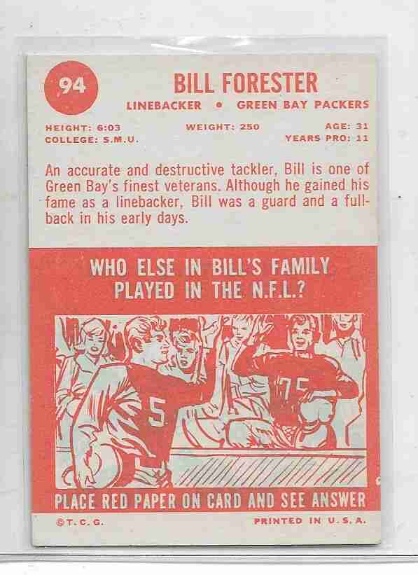 1963 Topps #94 ~ Bill Forester Green Bay Packers