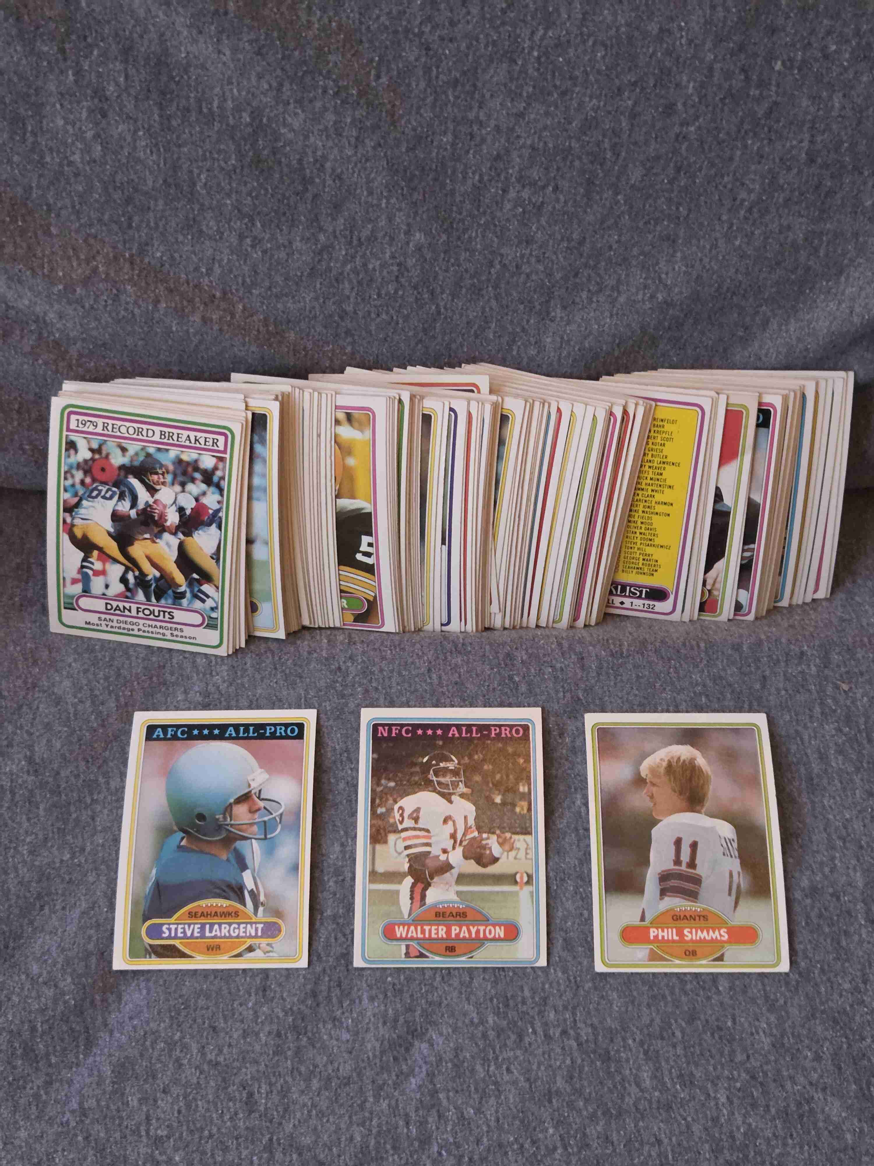 Time to thin out some sets from my collection! Keep watching Sportlots auctions as I’ll be putting sets up for bid each week – different sports, different years, different price points – in other words, something for everyone. ... Since its time for the NFL's big game, let's offer up a big set from the past, 1980 Topps football (complete at 528 cards). ... The Steelers won the 1980 title and their deep roster is here, including Bradshaw, Harris, Lambert, Greene, Ham, Webster, etc. as well as future NFL Hall of Famers such as Payton, Dorsett, Largent, Theismann, Fouts, Griese, Stabler, Staubach, etc. ... 63 cards with HOFers! ... The set grades Ex to Ex-Mt overall ... Quick and secure shipping (from USA) from a veteran Sportlots seller with 100% positive feedback. Good luck bidding!
