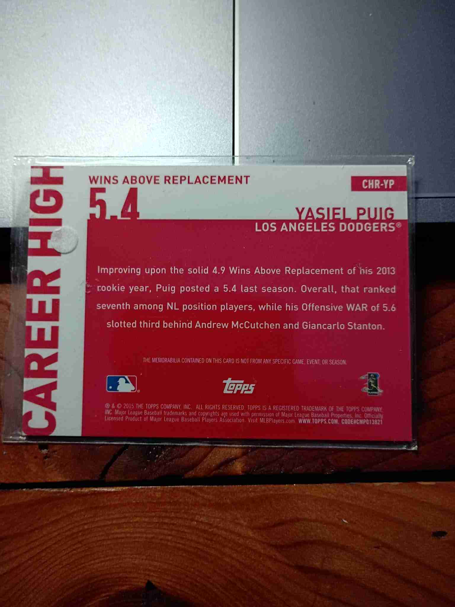 2015 Topps Career high Wins Above Replacement Game Used Yasiel Puig