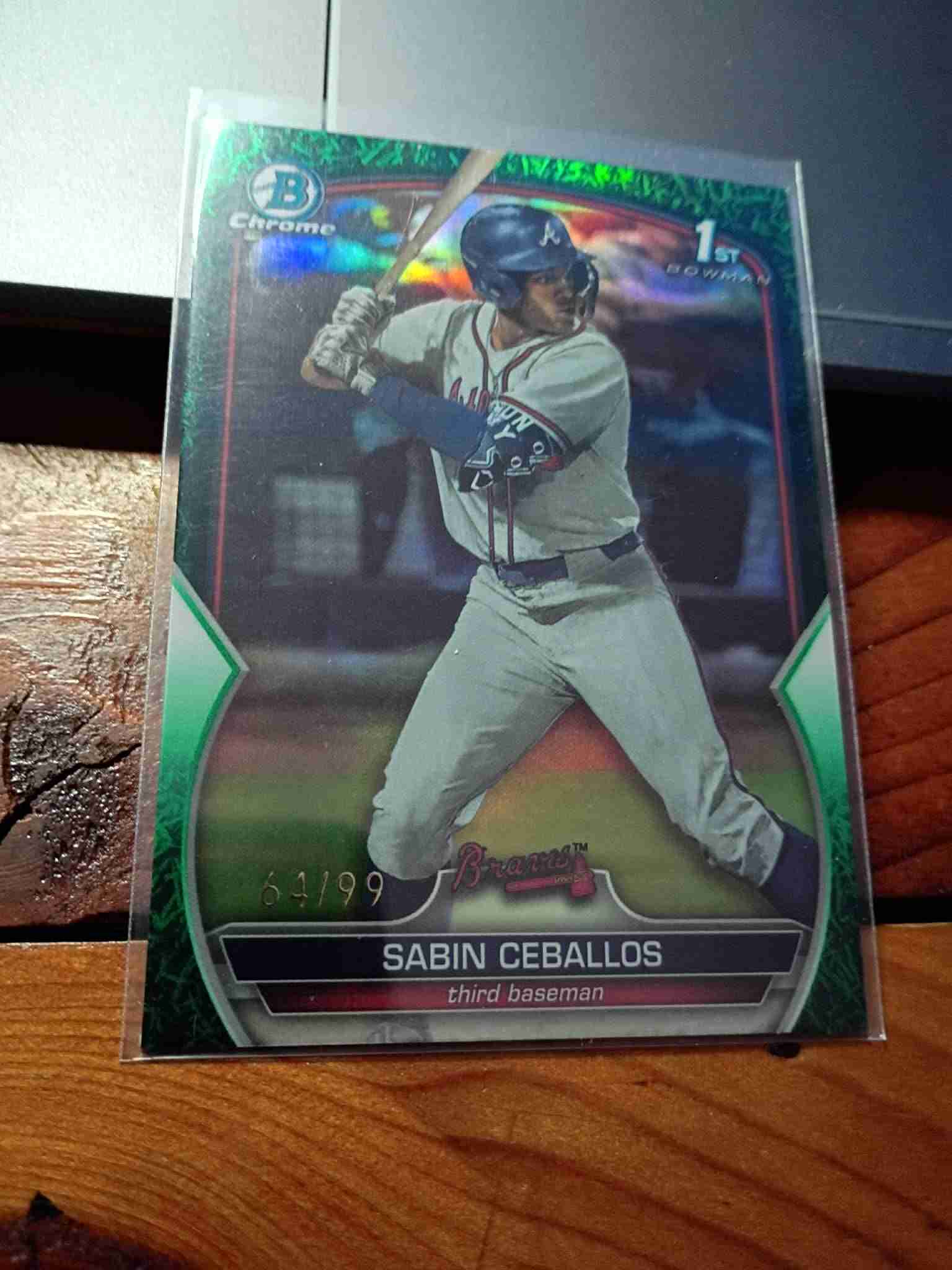 2024 Bowman Chrome 1st Bowman GREEN GRASS REFRACTOR #'d 64/99 Sabin Ceballos