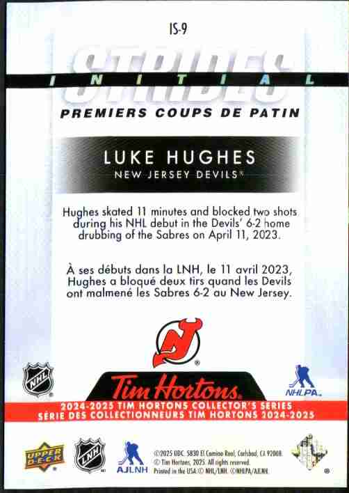 Luke Hughes 2024-25 Tim Hortons UD #IS-9 Initial Strides R