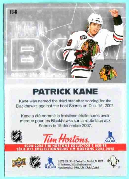 Patrick Kane #TB-8 2024 Upper Deck Tim Horton's Retrospecti