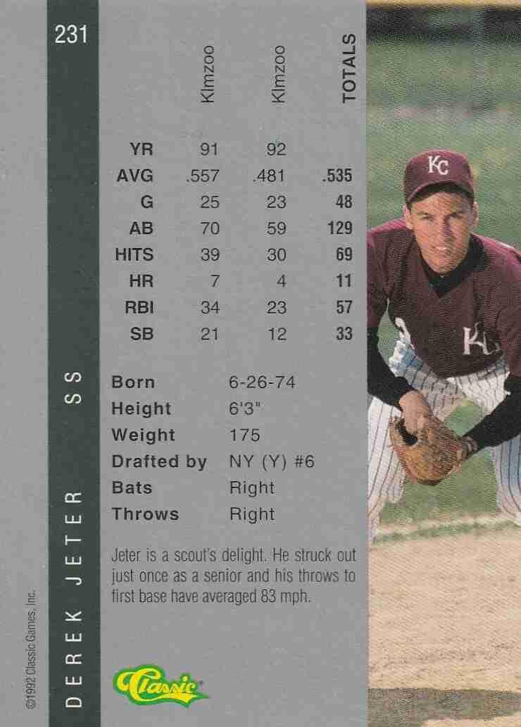 1992 Classic 4 Sport #231 Derek Jeter