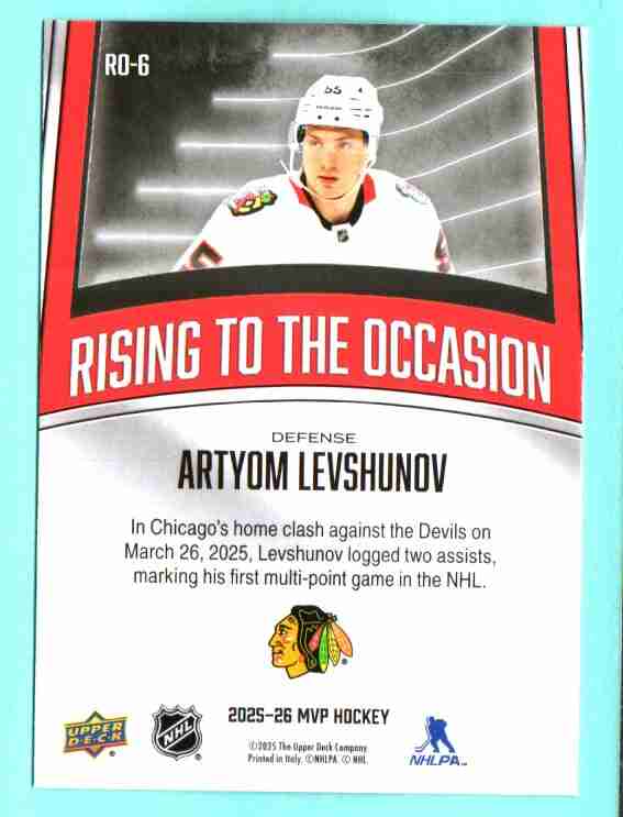 Artyom Levshunov #RO-6 2025 Upper Deck MVP Rising to the Oc