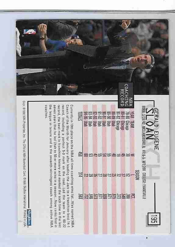 1996 NBA Hoops #195 ~ Jerry Sloan Utah Jazz Autograph