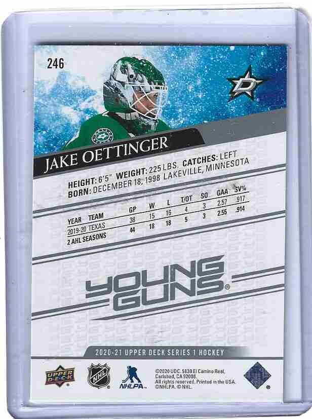 2020/21 UD 1 #241 JAKE OETTINGER YOUNG GUNS