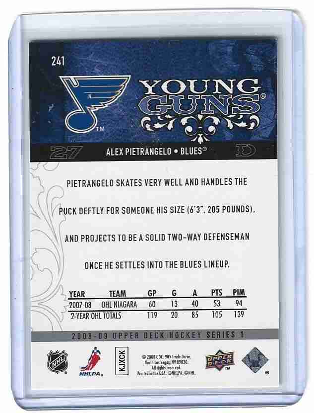 2008/09 UD 1 #241 ALEX PIETRANGELO YOUNG GUNS