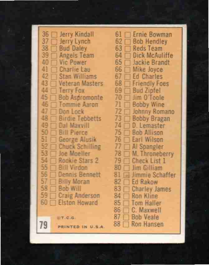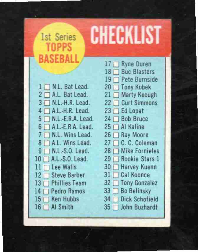 1963 Topps # 79 1st Series Checklist Unmarked