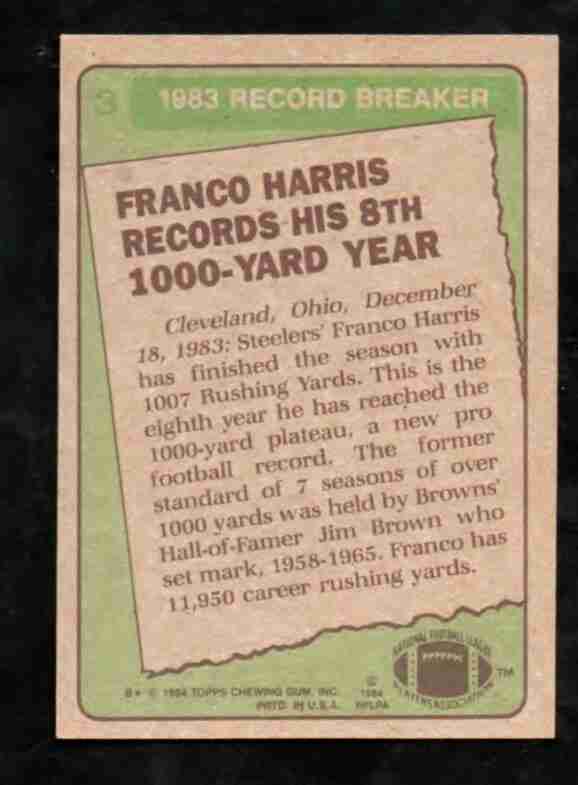 1984 Topps # 3 FRANCO HARRIS Pitt. Steelers