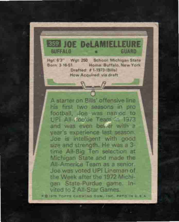 1975 Topps # 359 HOFer JOE DeLAMIELLEURE Buffalo Bills