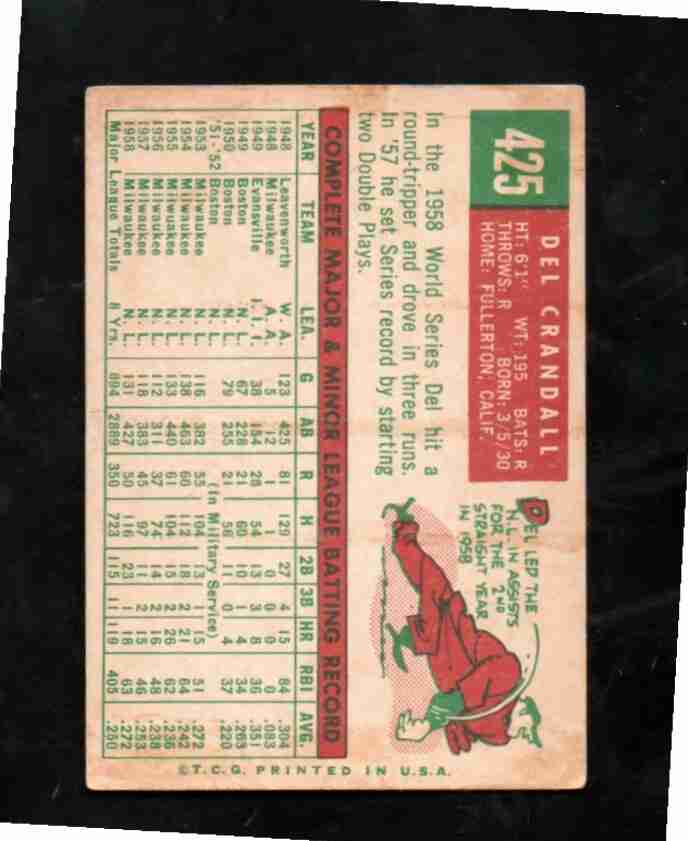 1959 Topps # 425 DEL CRANDALL Mil. Braves