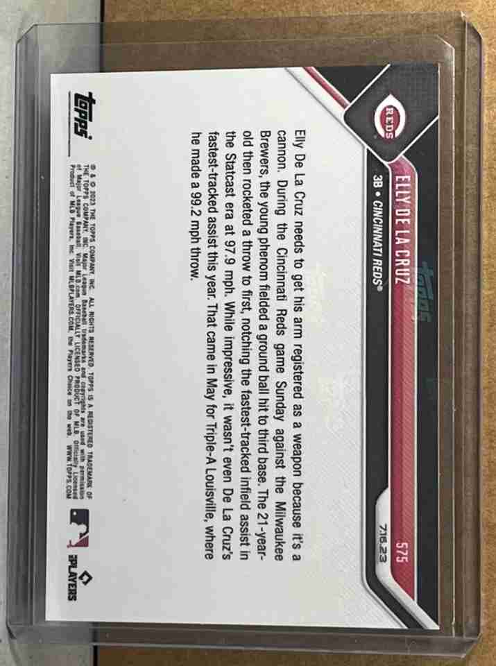2023 TOPPS NOW #575 ELLY DE LA CRUZ CINCINNATI REDS Call-Up fastest IF assist