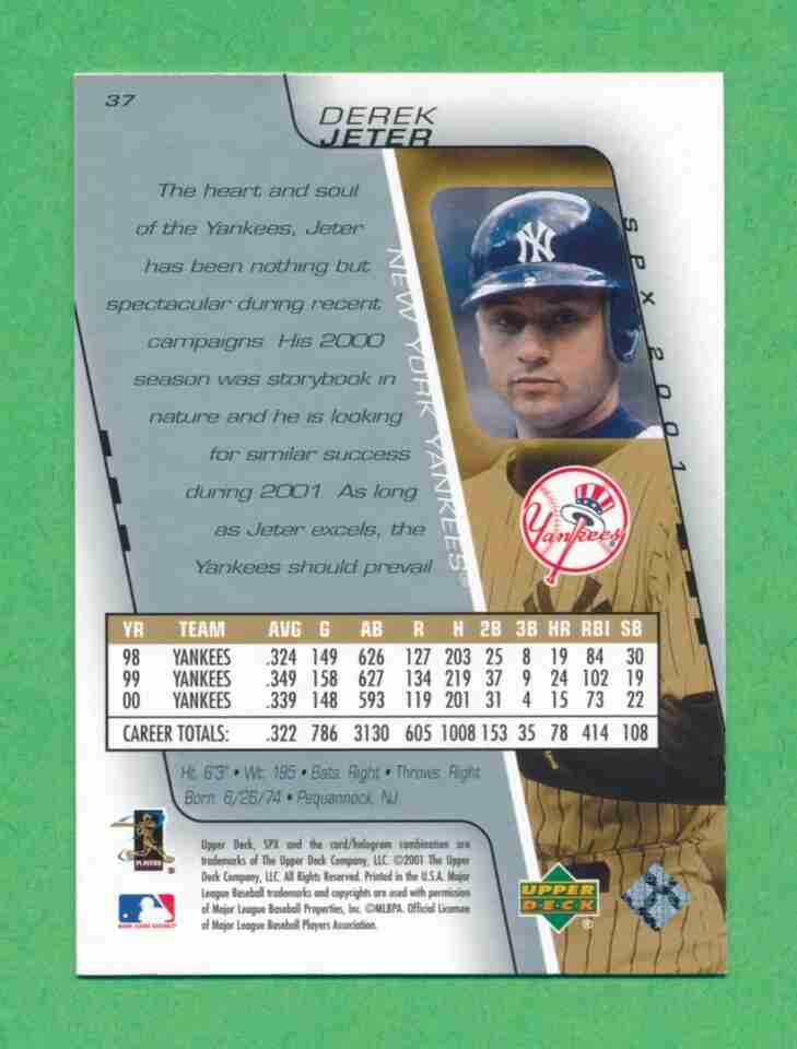 2001 SPx #37 Derek Jeter New York Yankees