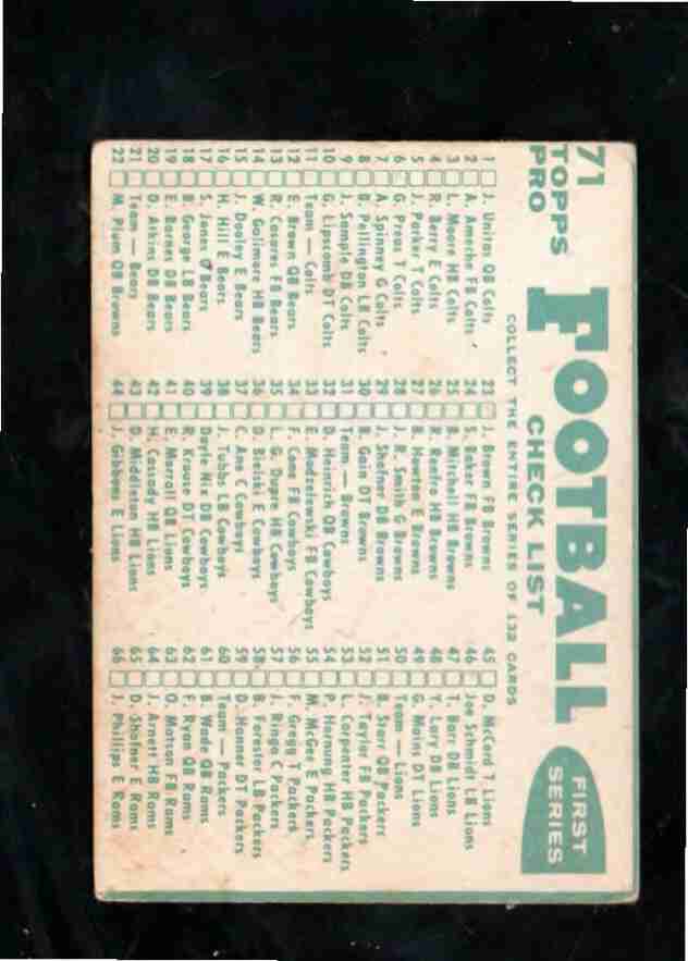 1960 Topps # 71 LOS ANGELES RAM TEAM