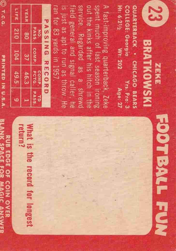 2-1958 Topps #23 Zeke Bratkowski #69 Chicago Cardinals TC