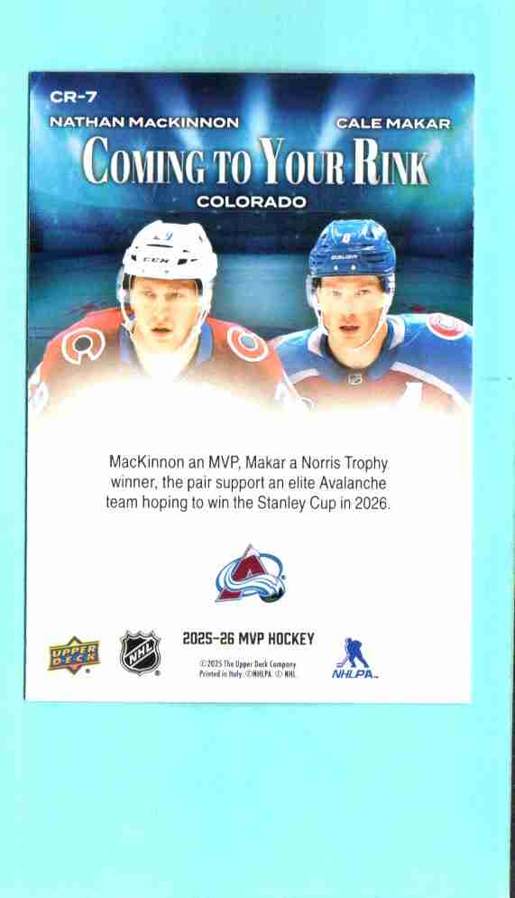 Nathan MacKinnon / Cale Makar #CR-7 2025 Upper Deck MVP Coming to Your Rink